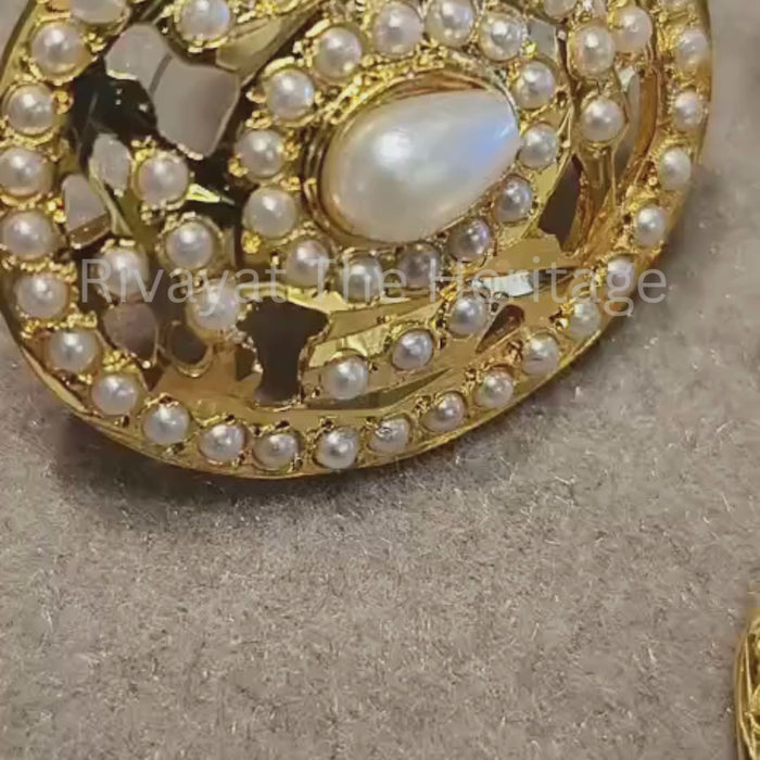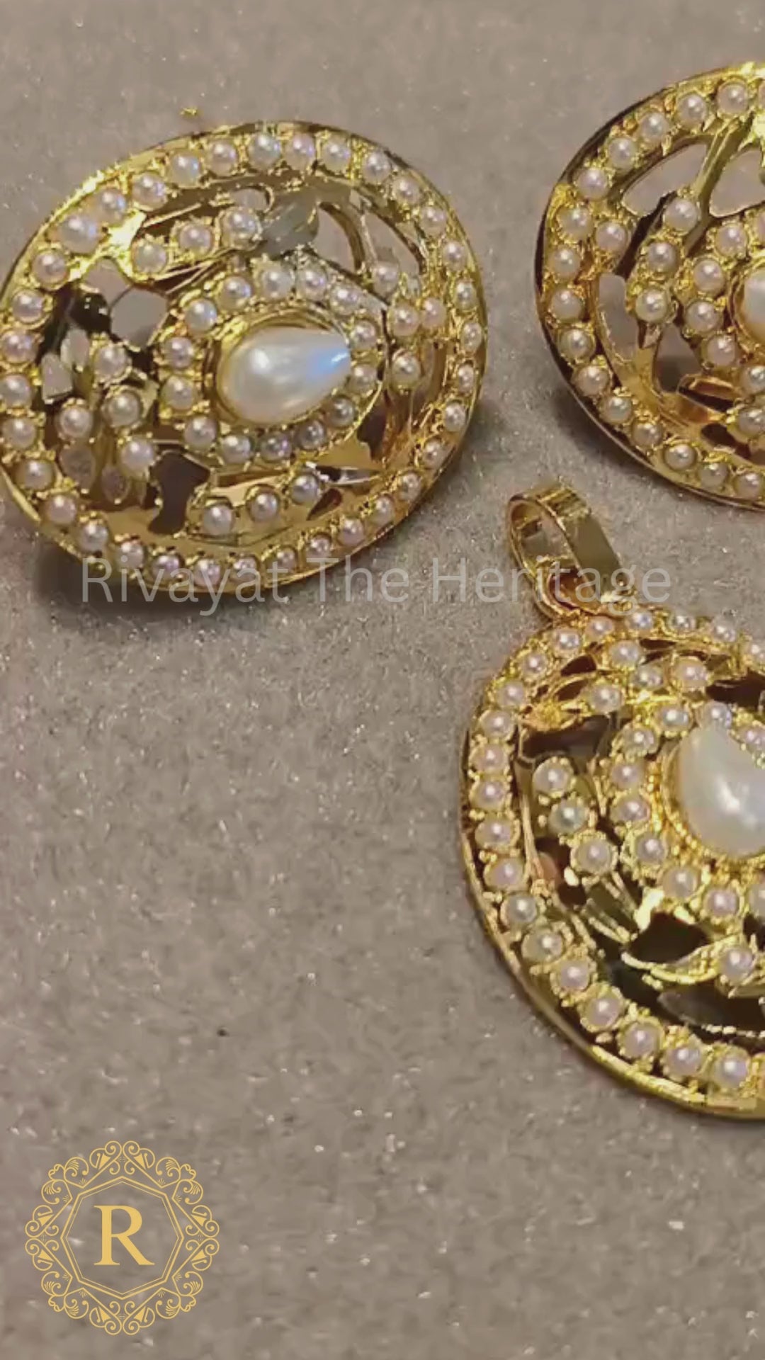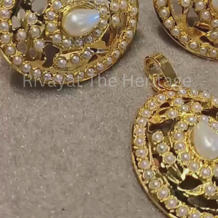 Experience the epitome of luxury with our Manika Golden Pearl Jadau Pendant Earring Set, a masterpiece from Rivayat The Heritage's...