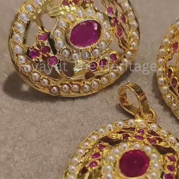 Royal Ruby Jadau Pendant & Earrings Set | 24K Gold Plated | Handcrafted Manika Collection