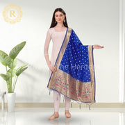 Banarasi Silk Paithani Dupatta in Ink Blue - Handwoven Traditional Indian Dupatta with Gold Border | Rivayat The Heritage