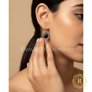Black Monalisa Stone Oxidized German Silver EarringsTransform your presence with these mesmerizing handcrafted oxidized German silver earrings featuring lustrous black...