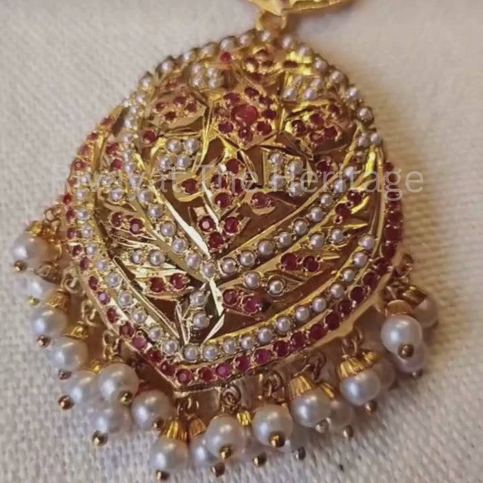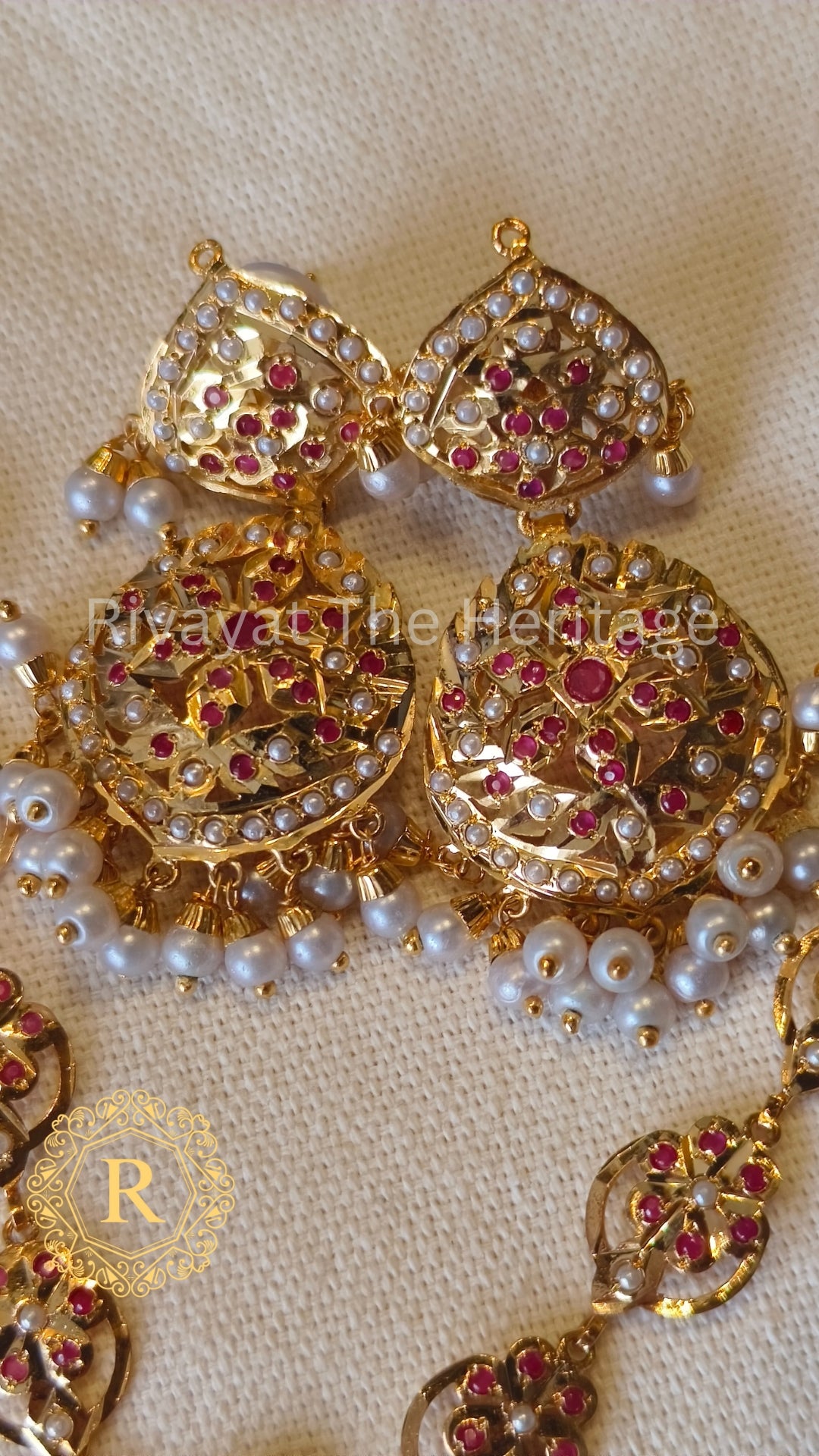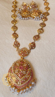 Majestic Ruby Pearl Jadau Rani Haar Set | Handcrafted 24K Gold Plated Bridal Jewelry | Rivayat Heritage