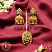 Royal Peepal Patti Heritage Jhumka Set with Maang Tikka - Handcrafted Traditional Wedding Jewelry